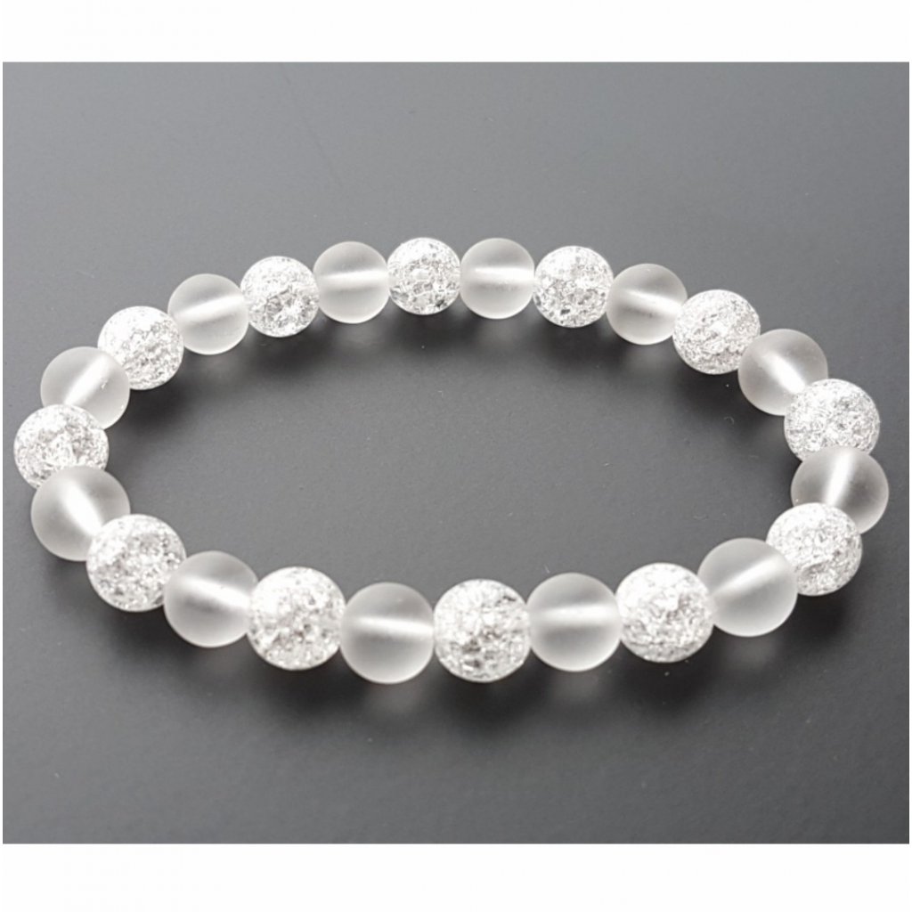 Krásny kryštálový náramok z praskaného a matného kryštálu. Horský kryštál je vďaka svojej jedinečnej špirálovej kryštalickej forme najúčinnejší liečivý kryštál a najsilnejší zosilňovač energie na tejto planéte. Pohlcuje, ukladá, uvoľňuje a reguluje energiu. Kryštál je považovaný za skvelý zdroj pozitívnej energie a môže ho používať každý, kto má duševnú silu, je tiež považovaný za veľmi účinný energetický ochranný kameň.