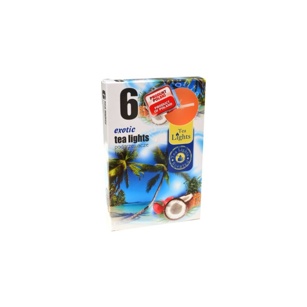 Čajové sviečky - Exotic. Čajové sviečky po zapálení uvoľňujú príjemnú exotickú vôňu a umocňujú pocit domácej pohody. Balenie: 6ks