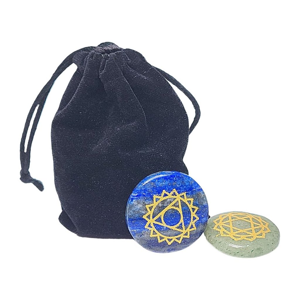 Čakrová sada kameňov vo vrecúšku obsahuje 7 kameňov v podobe okrúhlych placiek, zodpovedajúcich 7 základným čakrám. Každý kameň je brúsený do okrúhleho tvaru a zdobený ručne vyrytými symbolmi pre jednotlivé čakry. Čakrová sada kameňov slúži na harmonizáciu čakier a udržanie pozitívneho myslenia a nálady je jednou z mnohých praktík, ktoré sa zakladajú na duchovných a energetických princípoch. Energetické centrá v tele, známe ako čakry, sú dôležité pre naše celkové fyzické a duševné blaho.
