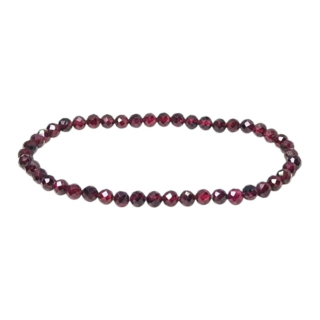 Granát náramok 4 mm (facetovaný) – energia, vášeň a životná sila. Tento elegantný náramok z pravého granátu vyniká hlbokou vínovo-červenou farbou a iskrivým leskom, ktorý ešte viac zvýrazňuje facetové brúsenie korálok. Granát je kameňom sily, odvahy a vitality – jeho energia prebúdza vnútorný oheň, podporuje sebavedomie a pomáha prekonávať prekážky s odhodlaním.