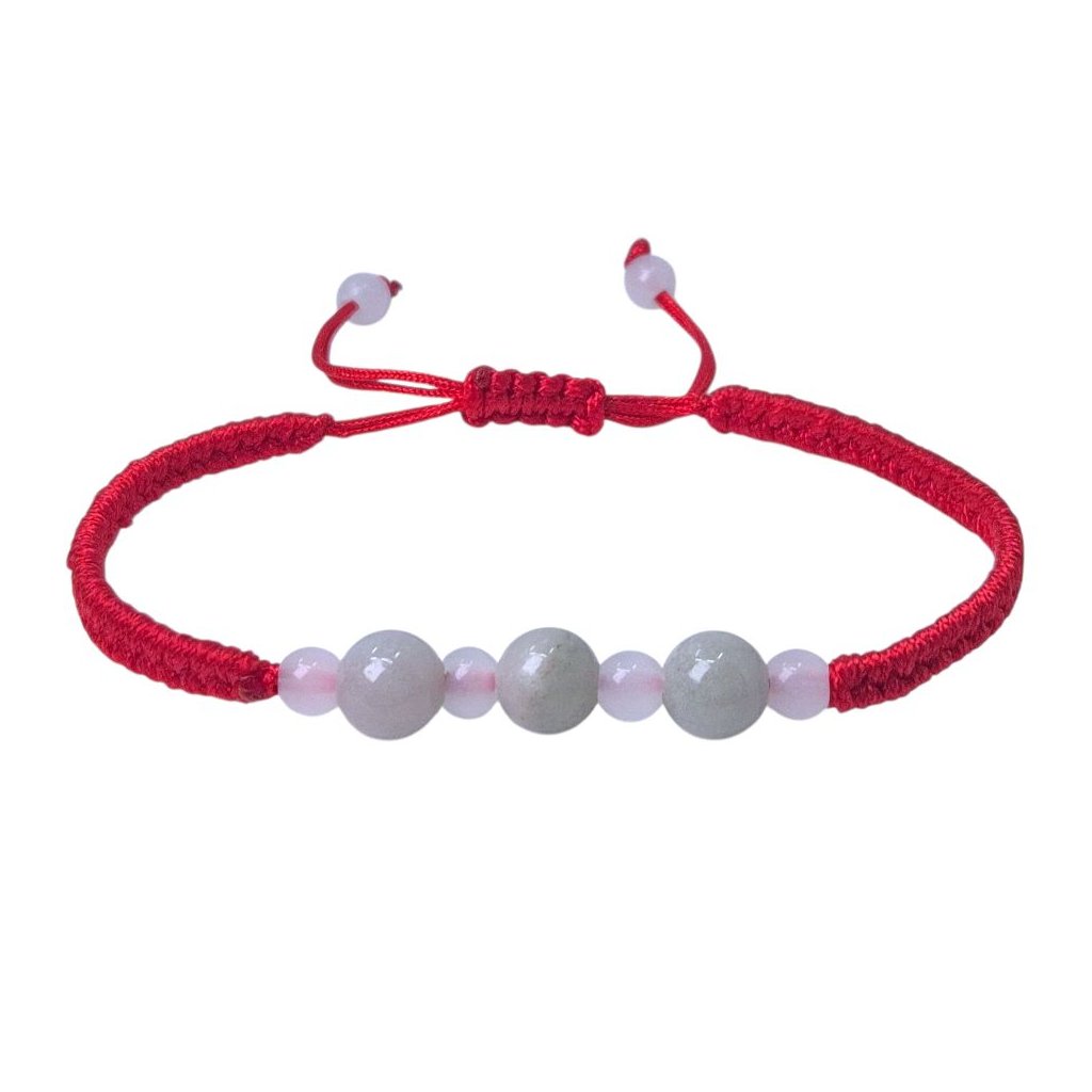 Tento náramok je ručne viazaný z odolnej červenej šnúrky, zdobený korálkami z pravého jadeitu. Má nastaviteľnú veľkosť, takže sa prispôsobí každému zápästiu. Svojím jednoduchým, no silne symbolickým dizajnom je vhodný pre ženy aj mužov – ako ochranný amulet, darček pre blízkeho alebo každodenný talizman šťastia.